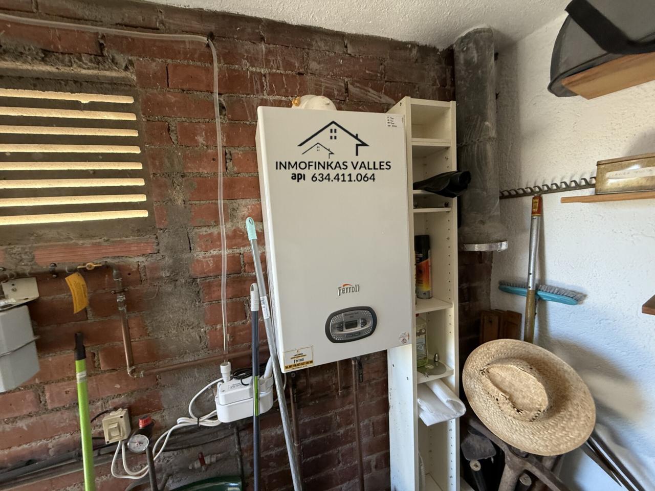 La casa tiene gas natural, caldera que suministra a los radiadores de todas las estancias y agua de los sanitarios y cocina caliente, suelos de gres, puertas de aluminio la mayoría, ventanas de aluminio con seguridad de apertura, persianas de PVC y mosquiteras en toda la casa, cocina y cuartos de baño reformados de hace poco uno aseo y el otro baño completo con plato de ducha con mampara, chimenea en el comedor, trastero con plato de ducha, contador del gas y caldera y cuarto de herramientas en la parte trasera de la casa saliendo de la cocina se hace servir de lavadero, ideal para lavar ropa y tender en el exterior cómodamente. Debajo de los balcones se encuentra otro trastero tipo sótano.